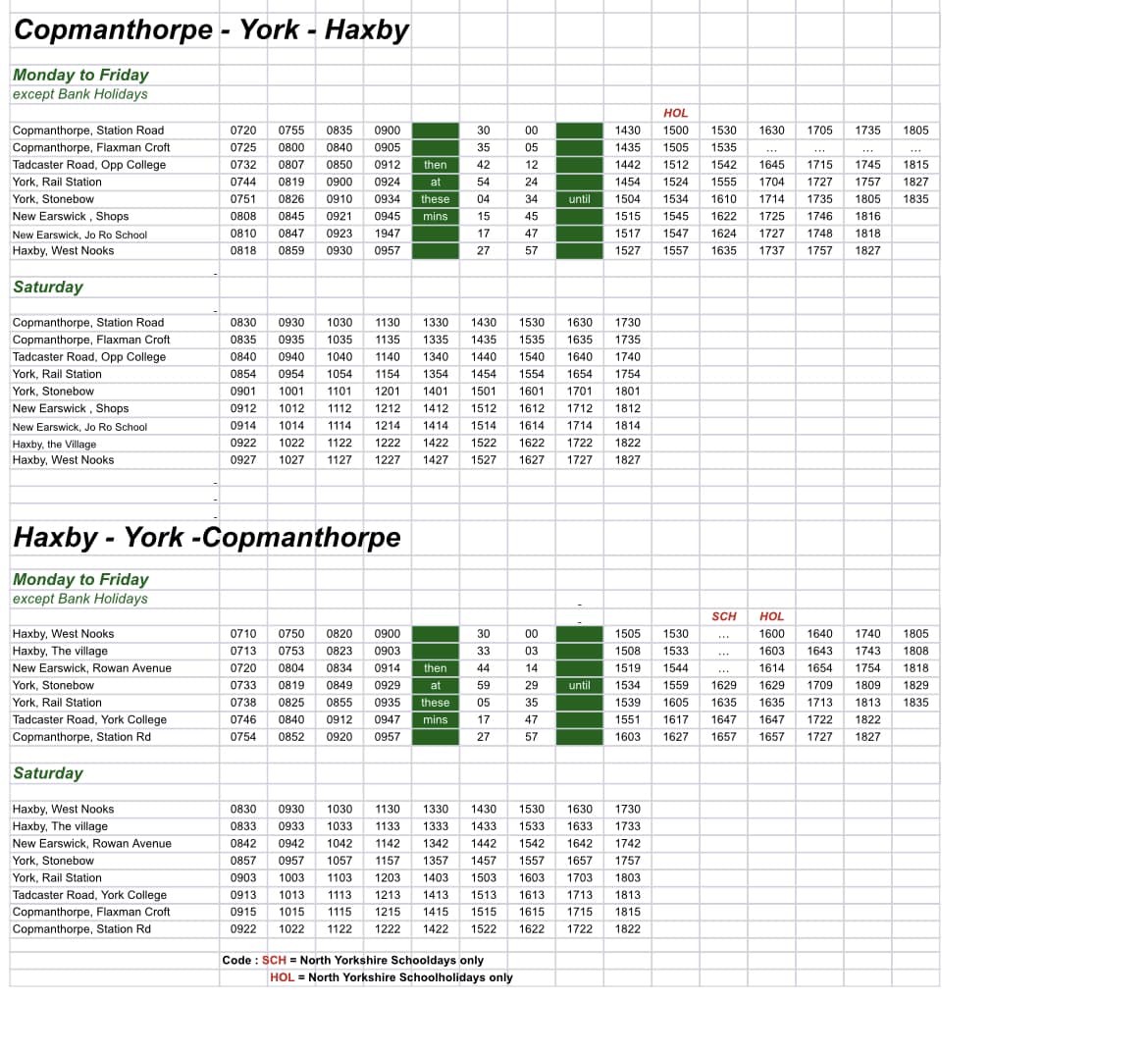 To summarise- the 1630 and 1705 from Haxby are combined into a 1640 journey.